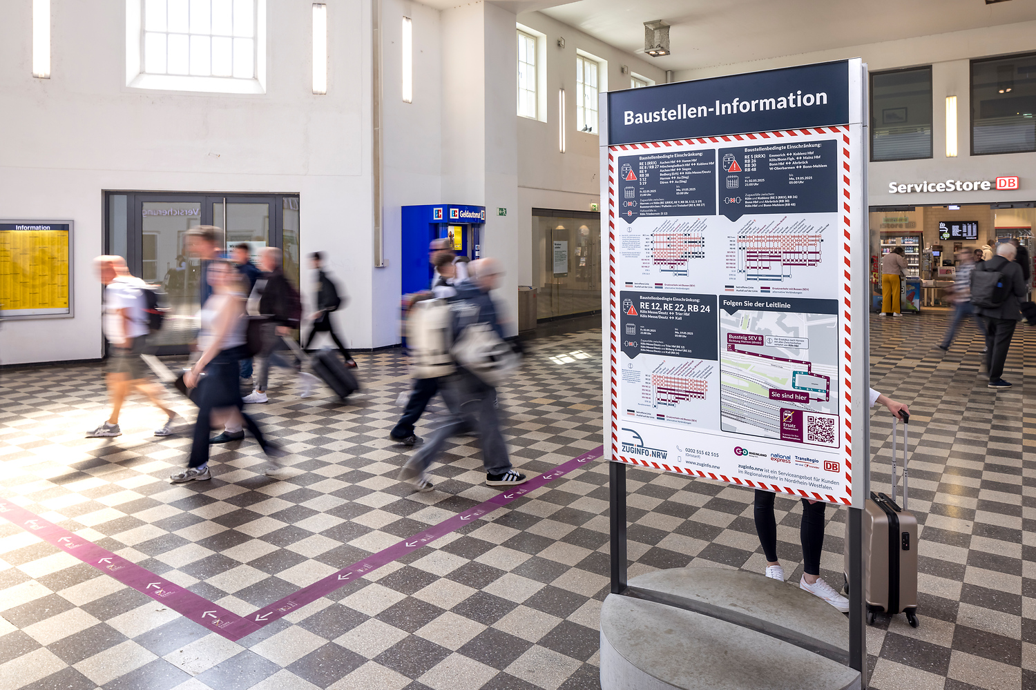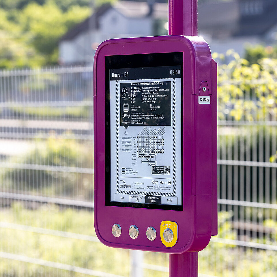 Im Mai 2025 haben die nordrhein-westfälischen SPNV-Aufgabenträger insgesamt 140 mobile und digitale Haltestellenmasten in Betrieb genommen. Die Anlagen kommen bei größeren Baumaßnahmen zum Einsatz, bieten Echtzeitinformationen und verbessern die Orientierung für Fahrgäste im Baustellenbetrieb.