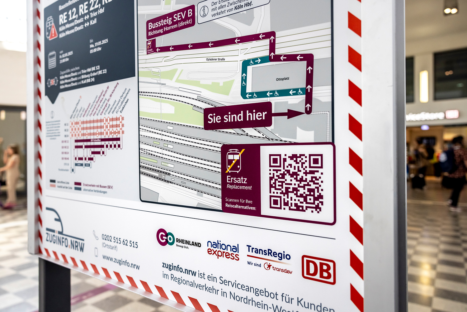 Mit der Einführung von 140 mobilen, digitalen Haltestellenmasten setzen die nordrhein-westfälischen Aufgabenträger für den Schienenpersonennahverkehr (SPNV) – go.Rheinland, Verkehrsverbund Rhein-Ruhr (VRR) und Nahverkehr Westfalen-Lippe (NWL) – neue Maßstäbe für die Fahrgastinformation im Schienenersatzverkehr (SEV).