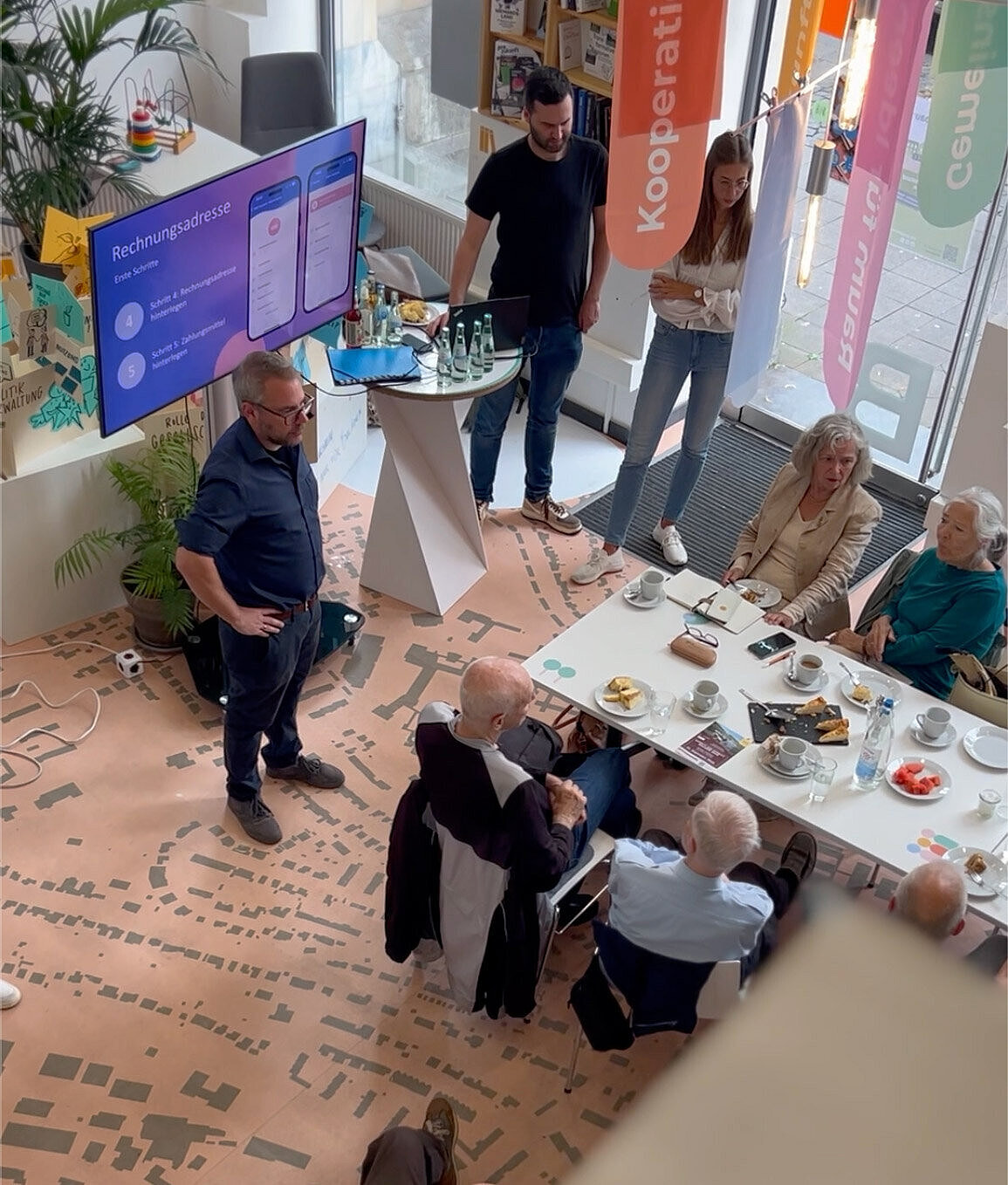 Das OecherLab ist ein Erprobungsraum der Stadt Aachen, in dem regelmäßig das Senior*innen-Café stattfindet, um Senior*innen in digitalen Fragen zu helfen. Der AVV ist dabei auf mehreren Veranstaltungen präsent, bei denen der Kauf von eezy (in naveo) erklärt, erläutert und gemeinsam mit den Senior*innen getestet wird.