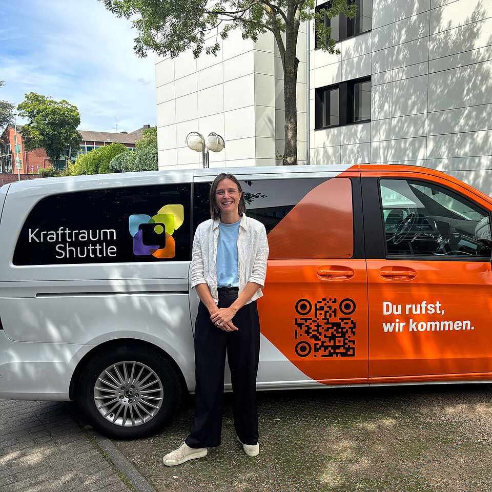 Lisa Claus: Sehr gerne. Der Kraftraum-Shuttle ist ein flexibler Fahrdienst, der über Web oder Telefon gebucht werden kann – ähnlich wie ein Sammeltaxi. Er ergänzt Bus und Bahn dort, wo der klassische Nahverkehr an seine Grenzen stößt, wie im Rheinischen Revier, wo unser Projekt verortet ist. Er bietet dort eine moderne, umweltfreundliche Alternative zum Auto, vor allem in ländlichen oder strukturschwächeren Regionen.